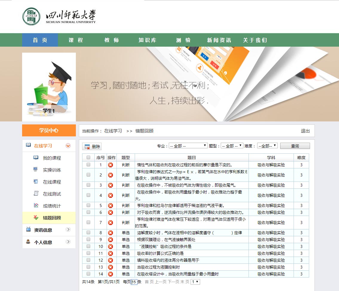 系統(tǒng)的主要功能可以理解為在線“學習與測評”。它的主要功能也集中在兩點,一是學習培訓;二是考試。在學習培訓部分,首先是老師編排課程,然后學生選擇相應課程學習??荚嚥糠?,則由老師錄入試題,隨機生成試卷,學生參加考試。通過記錄學員在線上參加的理論學習、考試、錯題回顧等情況,實現(xiàn)對學員學習情況的全程跟蹤管理和對學生培訓需求的全面掌握。