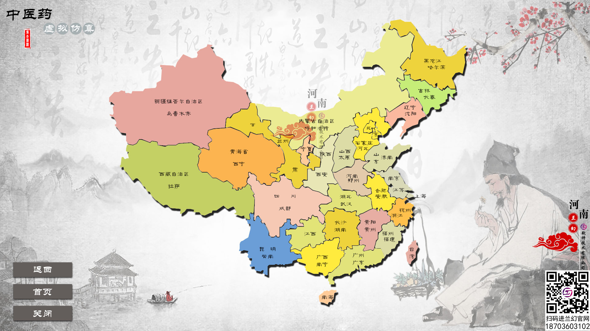 中醫藥虛擬仿真系統之中藥查詢模塊以各省、自治區、直轄市為單位,將道地藥材歸納整理:藥材基源物科屬、分布、生長環境、藥用部位形狀、性狀以及其他相關信息,同時結合相應的照片、語音等教學資源,讓學員中醫藥形成體系化認知。按照:基本信息、圖譜、鑒定、種植、炮制等形成知識體系。便于查詢。